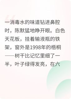 • 一消毒水的味道钻进鼻腔时,陈默猛地睁开眼。白色天花板,挂着输液瓶的铁架,