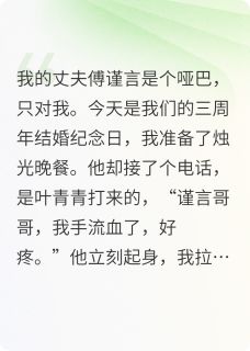 他却接了个电话,是叶青青打来的,“谨言哥哥,我手流血了,好疼。”他立刻起身,